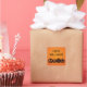 Stickers show four carved pumpkins in a row and "Happy Halloween" in distressed font above. The background is orange and the other elements are black. Funny, cool, and spooky jack o lanterns. One product in a Halloween party suite. Use on envelopes, paper, mail, gifts, loot bags.