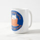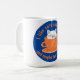 Cute ceramic mug with cartoon anime graphics of a white cat inside a orange coffee cup that is set in a blue circle. Orange text reads I like cats and coffee and maybe two people. Great gift idea for any cat fancier.