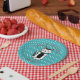 Funny Cat Cartoon Turquoise White Dot Birthday Paper Plate