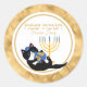 Funny Cat Gold Menorah Jewish Hebrew Hanukkah Classic Round Sticker