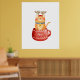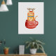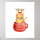 Funny Cat in Cup Reindeer Antlers Red Nose Xmas Poster