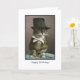 A humourous birthday card featuring a vintage photograph of a cat in a top hat and bow tie. The image is a reproduction of a vintage postcard originally published before 1923 by the Hugh Leighton Co, Portland. The inside verse reads: Where's the party?