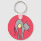 Funny Cat Keychain – Minimal Gray Kitty on Red