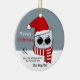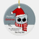 Whimsical modern Christmas ornament featuring a cat in Christmas outfit with sunglasses and your custom (funny or other) texts.