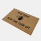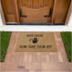 This doormat features a light brown, textured surface with a playful design. At the centre, there's a black cat with white markings, waving a paw in a friendly manner. It's a humourous and inviting way to remind guests to remove their shoes before entering. Perfect for adding a touch of whimsy to your entryway!