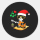 Funny Cat Playing Guitar Sungles Santa Hat Christm Classic Round Sticker