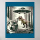 Funny Cat Selfie With Alien Ufo And T-rex Dinosaur Poster