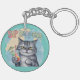 Funny Cat Sip Happens Keychain
