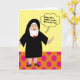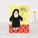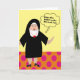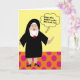 Humourous Catholic Nun Greeting card for any occasion, "Does this habit make me look fat?". Artist drawing of a nun wearing a traditional black habit, black veil and red rosary. Silly little nun greeting cards are perfect for any occasion or to send to your favourite nun just to say hello. All graphics by Gail Gabel, Ohio.