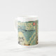 Alien abduction in vintage comic book style on this coffee mug featuring a Mars or UFO flying saucer beaming up 2 very angry cats not knowing what kind of trouble they're in, perfect for sci-fi or science fiction and funny animal lovers.