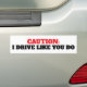 Make a bold and hilarious statement on the road with our "Caution I Drive Like You Do" vinyl bumper sticker. Crafted from high-quality weatherproof vinyl, this funny car decal is designed to grab attention and spark smiles in traffic. Whether you're looking to add some humour to your ride or find the perfect gag gift for a driver, this sticker is a hit.