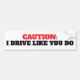 Funny Caution I Drive Like You Bumper Sticker