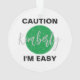 Funny Caution I'm easy ski and snowboard ornament. Enter the name of the easy one and change the colour of the font to anything you'd like. Contact me at KymberliDesigns@gmail.com for any custom requests or help.