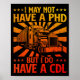 Funny Cdl Trucker Design For Men Women Semi Truck Poster