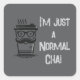 A grey sticker with quirky illustration of a chai cup with glasses and a moustache, featuring the text 'I'm Just a Normal Chai.' Perfect for that person in your life that loves puns and is "normal".