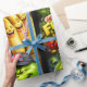 Elevate your giftgiving with this high-end get your fruit and veg wrapping paper this vibrant designer quality features a riot of expressive fruit and vegetable characters from laughing strawberries and bananas to a grumpy watermelon and an eggplant in a camo hat with a classic British humour complete with the Union Jack cap. This bold colourful pattern is printed on premium paper for a luxury feel perfect for foodies chefs or anyone who appreciates a quirky high-quality aesthetic. It turns every gift into a