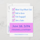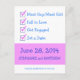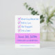 This funny Save-the-Date postcard features a checklist of important events that lead up to the big day. Text is light blue on white and blue on pink. Alternate version available in red and black: