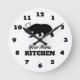 Funny chef bear kitchen wall clock with custom name. Add your own text. Cool animal silhouette with cook's hat.