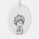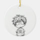 A cute and funny chibi anime boy with a confused expression and messy hair. A minimalist black and white design perfect for anime lovers and humour fans.