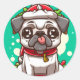 Funny Chibi Kawaii Dog Pug Christmas Sticker