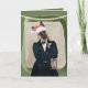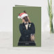 What could be more adorable than a well dressed, German Shepherd dog spreading around some Christmas cheer? Nothing! This stylish guy looks like he is ready for a trendy holiday party with his swanky suit and debonair attitude, while a santa hat sits jauntily atop his head. He holds a charming lantern to guide you to the festivities and has a sprig of greenery in his lapel. The greeting inside can be kept the way it is or customized to better fit your needs. Truly, a fun and unique card, especially for the dog lovers in your life!