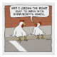 This funny poster design features a chicken explaining to its chicken pal why it crosses the road: To mess with everybody's heads, of course! © 2015 Chuck Ingwersen
