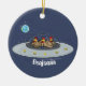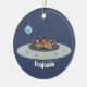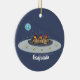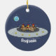Funny chickens in space cartoon illustration ceramic ornament