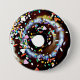 Funny Chocolate Doughnut Doughnut Button. Chocolate doughnut with colourful sprinkles and chocolate frosting.