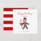 Funny Christmas 2022 Gingerbread Man In Face Mask Card Greeting Card is designed with a cute gingerbread man wearing a Covid-19 mask and red Santa hat. He has peppermint candy for buttons and is holding a candy cane. The greeting is "happy holidays" in red trendy hand lettering followed by custom year and personalized with family's last name. Click personalize option and follow the prompts.