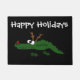 Delightful fun green alligator is dressed up with red nose and antlers like Rudolph the red-nosed reindeer. Can also add custom text when ordering.