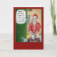A cartoon Christmas greeting card with a cartoon of Santa taking the liberty of a bathroom break and getting busted using the toilet. The inside of the card reads “Wishing you a very Merry Christmas and Happy Holidays filled with fun…food and family.