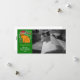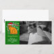This cute Christmas photo card design has an orange cat wearing a Santa hat. It's sitting next to a gift box with snowflakes surrounding it. The kitty cat is "Feline Festive." If you love puns and cats, this is the perfect holiday humour for you.