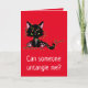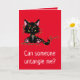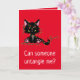 A funny Christmas themed card, this item features a black cat tangled up in Christmas lights. Using a red background, the front reads "Can someone untangle me? The inside of the card has "Merry Christmas" in excellent font. Personalize yours today!