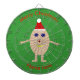 This awesome dart board features a funny cartoon of an egg with arms and legs. The egg has arms and legs and a small crack in its head exposing the white inside. It has blue eyes with a black pupil and a big smile where the yolk of the egg can be seen. The eggshell looks rough. This Christmas egg is wearing a santa hat ready to party this holiday season.