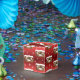 It wouldn't be the holidays without fruitcake! These funny Christmas fruitcakes have creepy faces and a red gradient background colour. Fill this silly, custom favour box with treats for a holiday party!