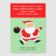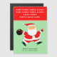 Creative bowling Christmas holiday cards featuring funny Santa Claus bowler coming right down Santa Claus lane.