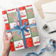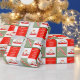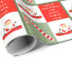 Creative canoe kayaking camping Christmas gift wrap featuring camper Santa Claus and funny merry Christmas quote.