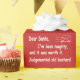 Funny letter to Santa. Dear Santa, I've been naughty and its was worth it. Judgemental / Judgmental old bastard. The perfect funny design for the works Christmas party or for any Christmas gift. If you like to mix and match wrap there is a matching plain red in the store in the plain colours section.