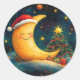 Funny Christmas Moon Galaxy Celebration Classic Round Sticker