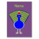 This awesome tablecard features a bright and bold Christmas Peacock wearing a Santa hat. The bird has a bright blue belly with a beautiful collection of feathers held proudly behind. The eyespots are blue, brown and green. The Peacock has big black eyes and a cute little grey beak.