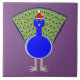 This awesome tile features a bright and bold Christmas Peacock wearing a Santa hat. The bird has a bright blue belly with a beautiful collection of feathers held proudly behind. The eyespots are blue, brown and green. The Peacock has big black eyes and a cute little grey beak.