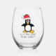 Funny Christmas Penguin Is it too late to be good Stemless Wine Glass