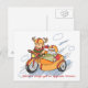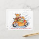 Funny cartoon to entertain and tickle your friends. Santa's traditional sleigh and flying reindeer is upgraded to a flying motorbike and sidecar. Spread joy and laughter with this humourous Christmas postcard for your friends and family.