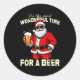 Funny Christmas Santa Drinking Beer Wonderful Time Classic Round Sticker