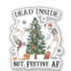 Celebrate the holidays with dark humour in this “Dead Inside but Festive AF” sticker featuring dancing skeletons around a Christmas tree in an ugly sweater-inspired style. Perfect for Halloween lovers, goths, and anyone who enjoys sarcastic Christmas humour. Great for holiday parties, gag gifts, and Secret Santa.