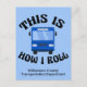 This funny gift for a city bus driver features a blue public transit bus inside the hilarious phrase This is How I Roll. A cool pop culture reference for a bus driver who likes modern humour. Cute personalized postcard for drivers with their custom text.