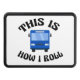 This funny gift for a city bus driver features a blue public transit bus inside the hilarious phrase This is How I Roll. A cool pop culture reference for a bus driver who likes modern humour. Cute trailer hitch cover for drivers.