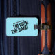 Cool clarinet humour gift that reads I'm With The Band under the instrument. Personalize these cute luggage tags to make a funny stocking stuffer gift for someone who likes playing the clarinet.