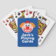 Funny clown face custom playing cards for kids. Funny mime cartoon with custom name. Add your own text. Colourful joker drawing.