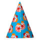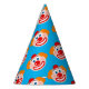 Funny clown kid's Birthday party paper cone hats. Cute pattern with mime face drawing. Blue or custom colour. Personalize with text optionally.